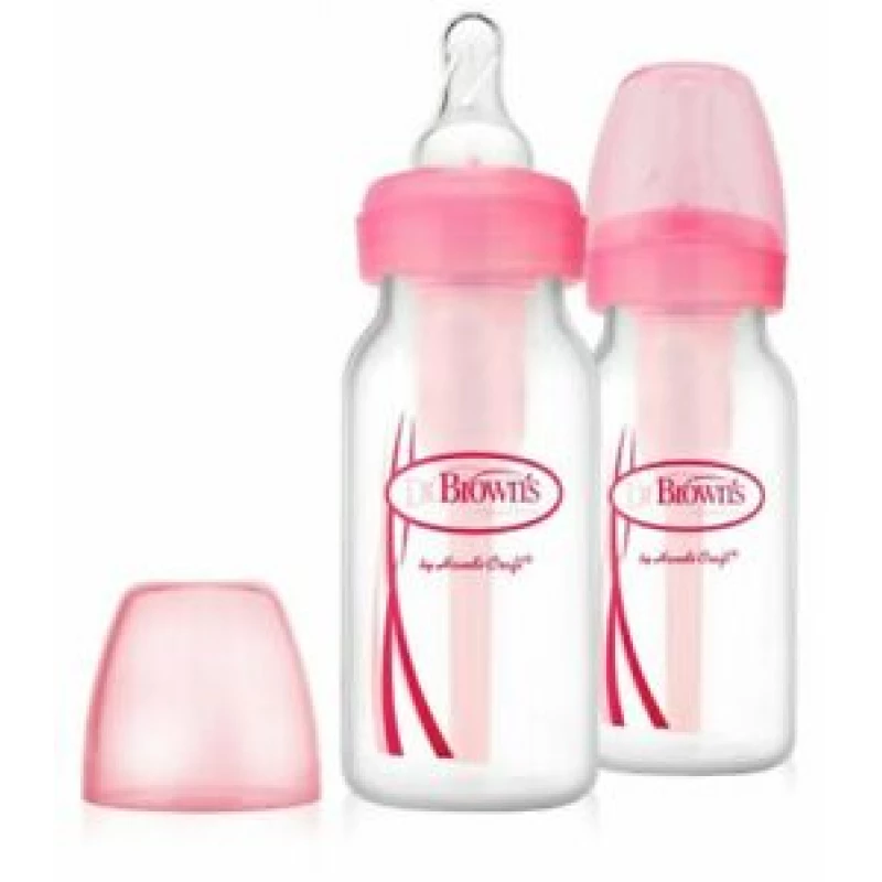 دكتور براونز – خيارات ضيقة العنق + رضّاعة وردية – ١٢٠ مل – عبوة من قطعتين