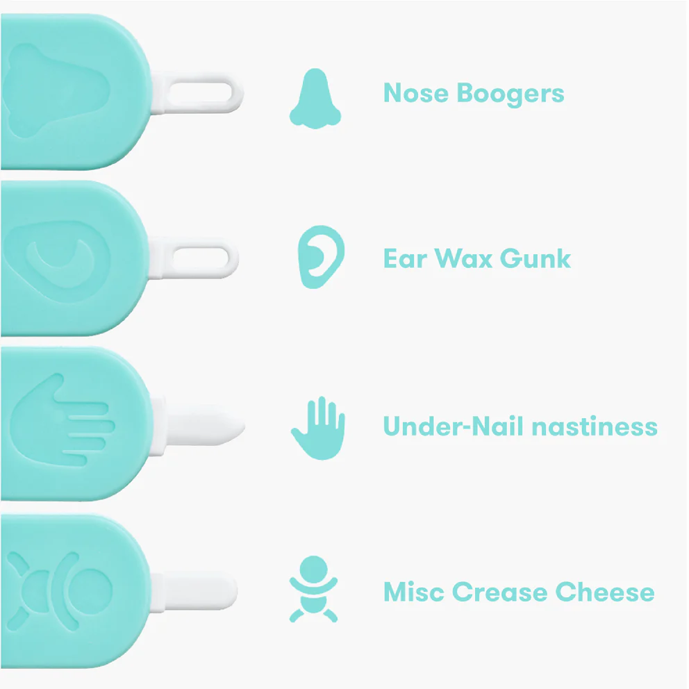 Multi-Tasking Magic: One tool, four soft and flexible tips for cleaning noses, ears, under nails, and anywhere else baby collects goo.