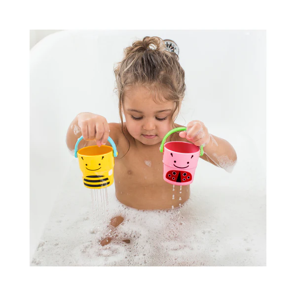 Make bath time extra fun with these adorable nesting buckets featuring three unique sprinkle effects. Perfectly sized for little hands, they encourage motor skill development as kids pour, drain, and stack their way through tub time. When playtime’s over, the buckets nest neatly for easy storage. Pair them with our full line of Skip Hop Zoo® baby and toddler bath toys for endless splashy fun!