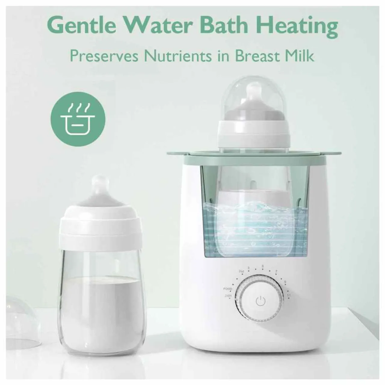 Simplify feeding time with the Momcozy 9-in-1 Nutri Bottle Warmer, your all-in-one solution for baby care. This advanced warmer quickly heats milk, food, and water while preserving essential nutrients, ensuring safe and even warming every time.