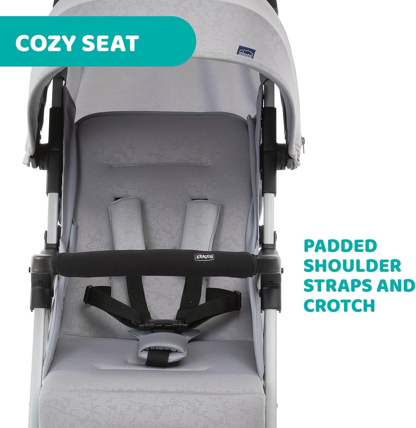 - Safety First – Padded front bumper bar with saliva-tested fabric for added security.