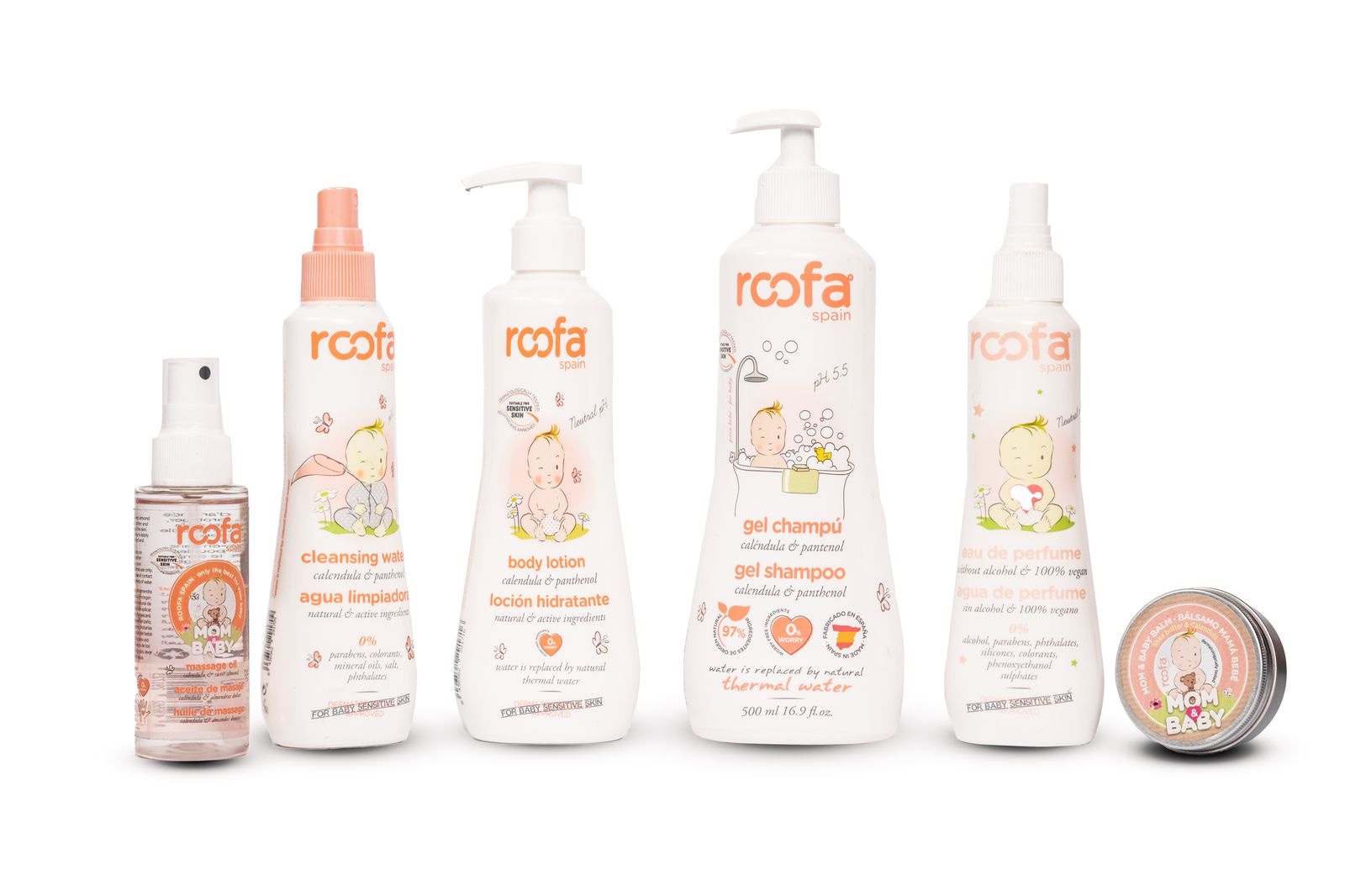 Roofa Calendula presents a complete skincare collection designed for both mothers and babies. Each product is enriched with natural ingredients such as calendula flower, shea butter, aloe vera, almond oil, and panthenol — offering gentle, effective hydration and soothing care for delicate skin.
