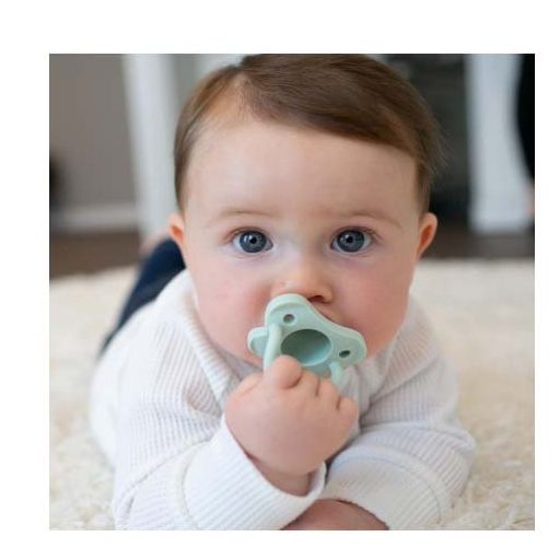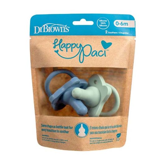 Dr. Brown’s HappyPaci Silicone One-Piece Soother – 0-6m, Blue and Green, 2-Pack