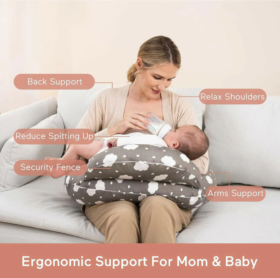 Make every feeding session more comfortable with the Momcozy Nursing Breastfeeding Pillow, designed to take pressure off your arms, back, and shoulders while supporting your baby in an ergonomic position. Perfect for breastfeeding or bottle feeding, this pillow promotes better posture, improved circulation, and muscle relaxation, helping both parent and baby enjoy a more comfortable experience.