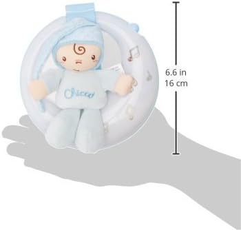 Chicco’s musical cot toy soothes newborns with classical melodies and soft light effects, featuring a cute figure and adjustable strap for easy attachment.