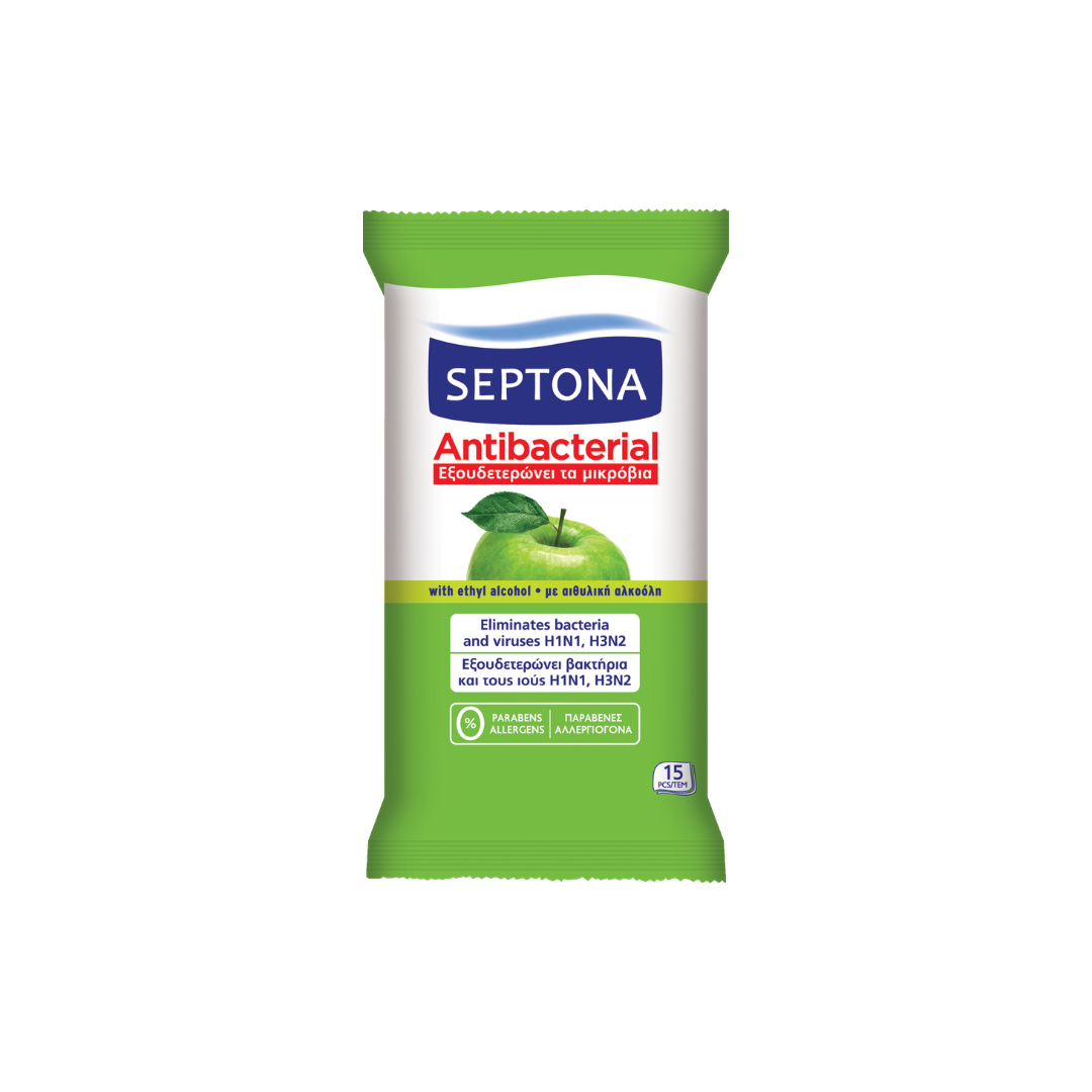 Septona Antibacterial Wipes GREEN APPLE 15pcs